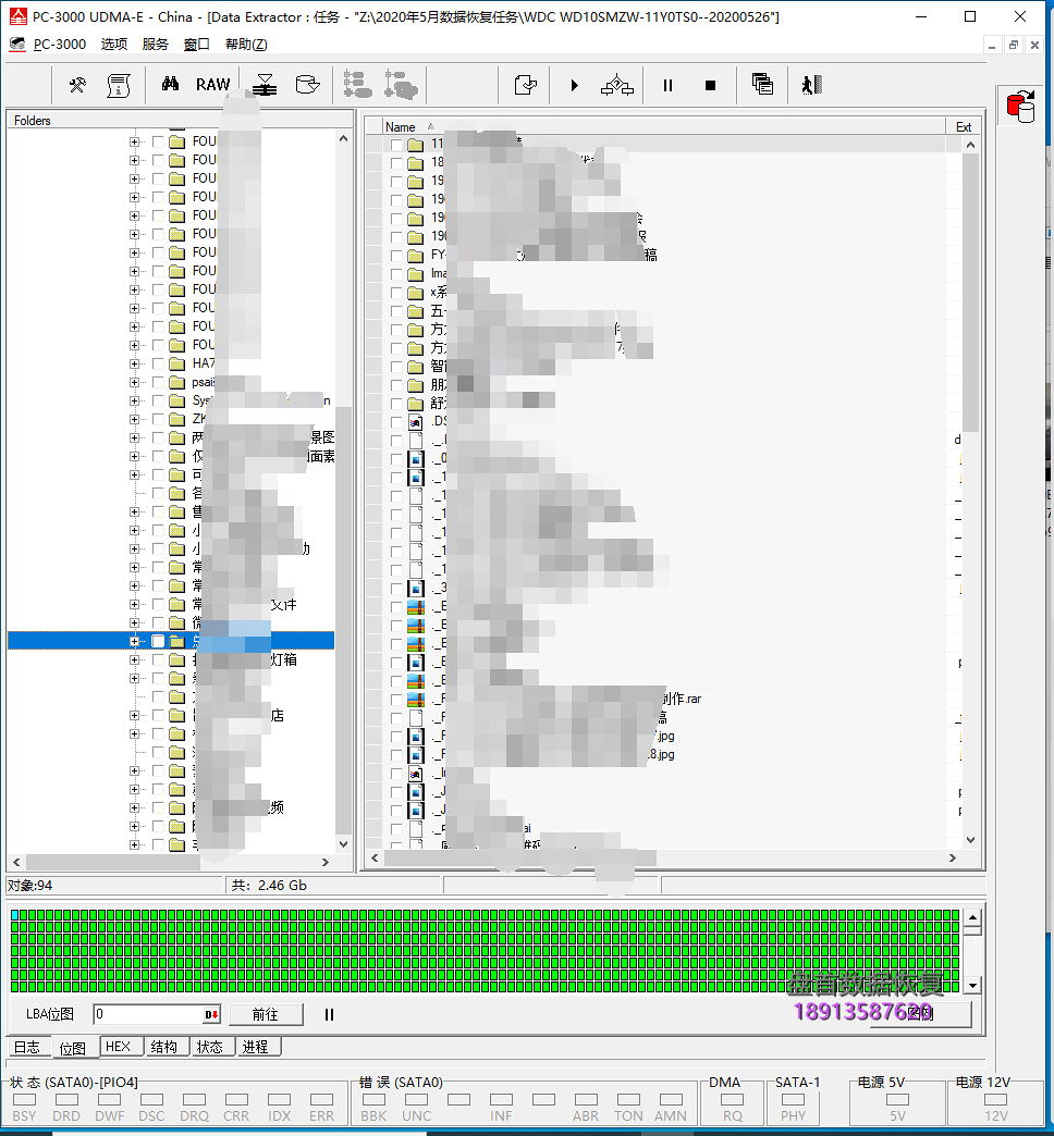 启动PC3000 Western Digital程序进行固件模块检测并备份核心模块(190号模块必须备份),使用PC3000 Data Extractor建立数据恢复任务,建立磁头位图成功,这种SMR叠瓦式硬盘数据恢复确实有难度的,另外数据量大于700G以上,开盘恢复共计用时约3天左右才完成.