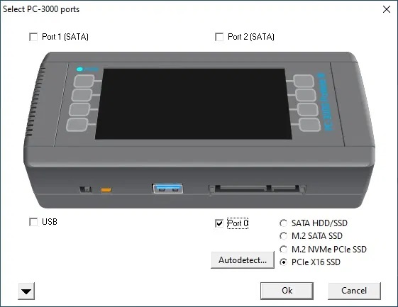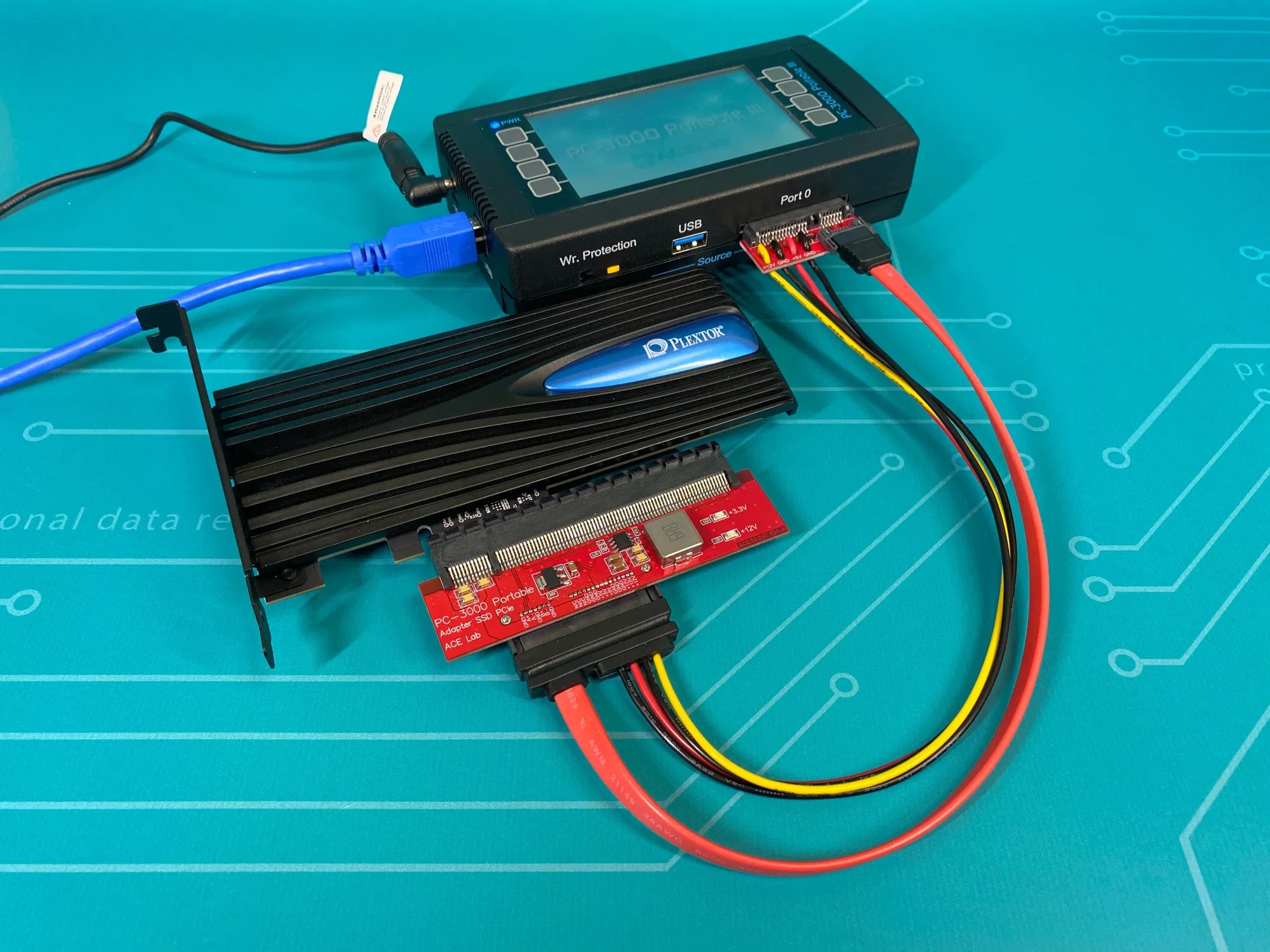 让我们通过PCIe x16 SSD适配器将PCIe SSD连接到PC-3000 Portable III端口: