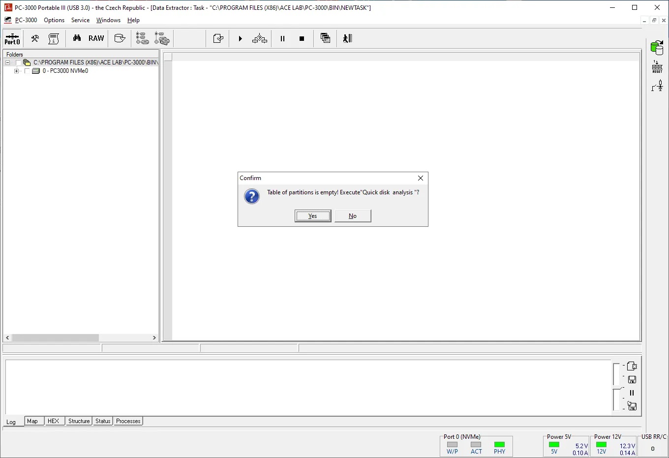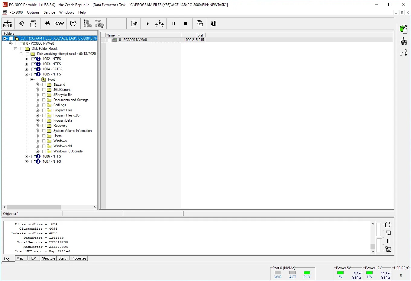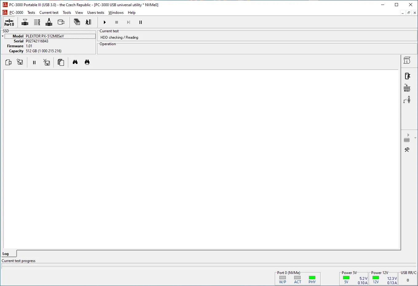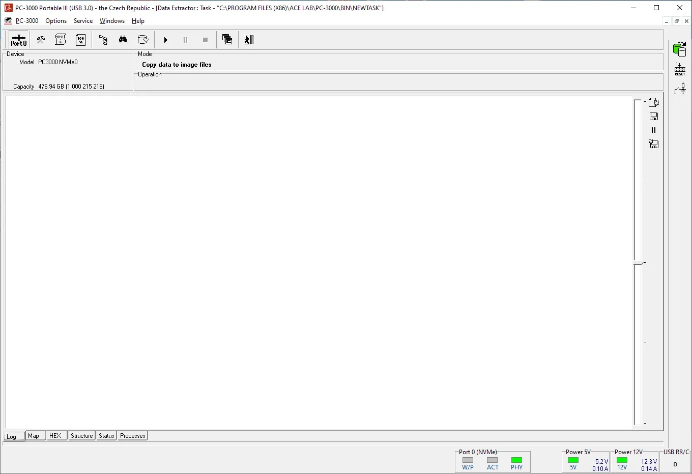 然后,您需要运行PC-3000 Portable III软件。 它将自动选择PCIe x16驱动器作为目标: