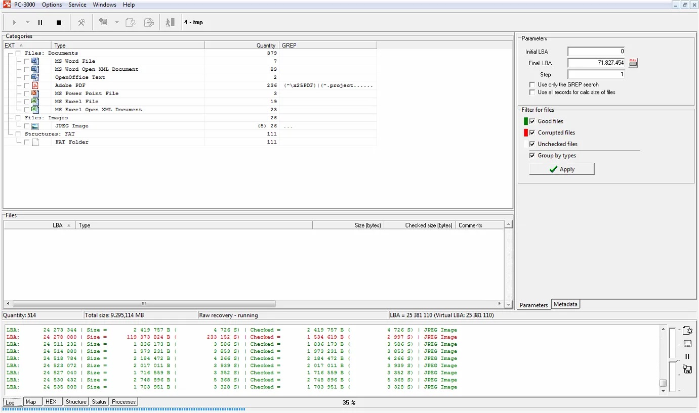 步骤4. XOR之后,页面转换将自动应用。 由于我们的案例不包含交错处理(按块分割,按页面分割),因此在尝试RAW之后,我们会发现许多检查尺寸较大的优质文件:
