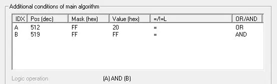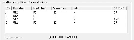 如果FF掩码的512的内容= 20 AND,FF掩码的519的内容= FF,则该条件为TRUE,并且可以执行,否则将被忽略。