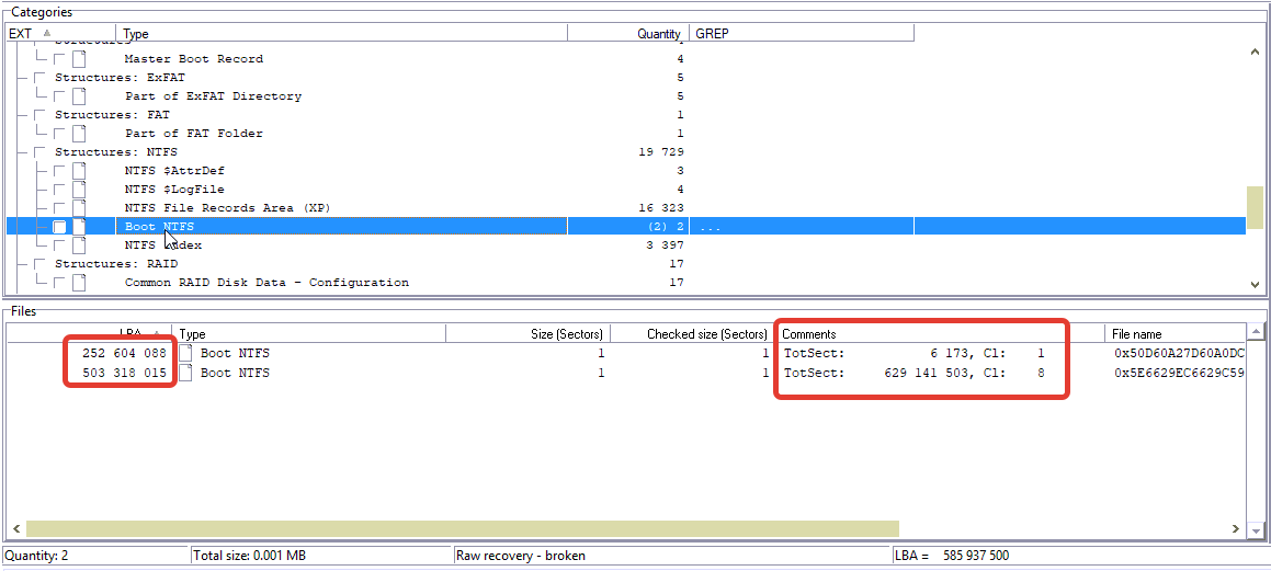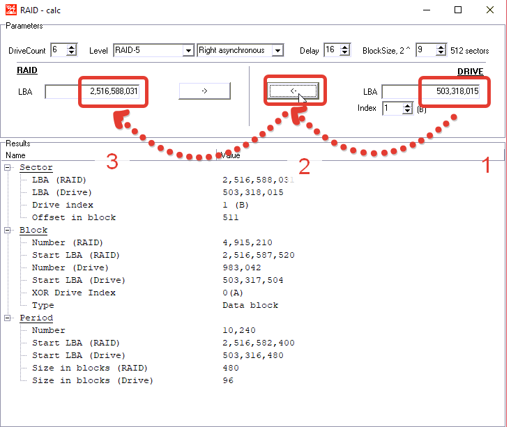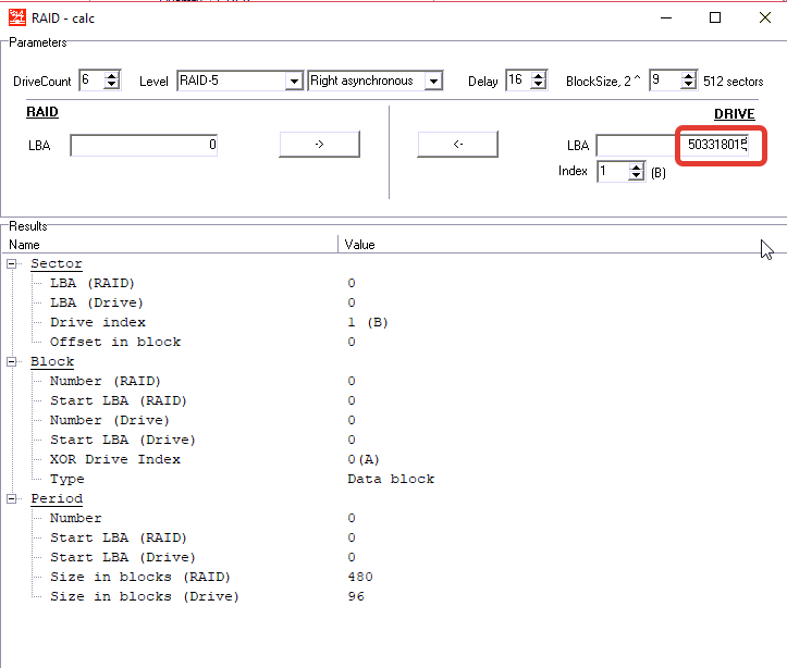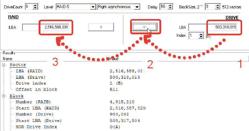 在左侧,我们在RAID阵列上获得此启动的近似LBA