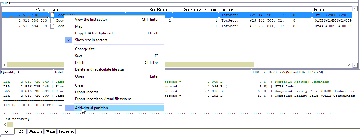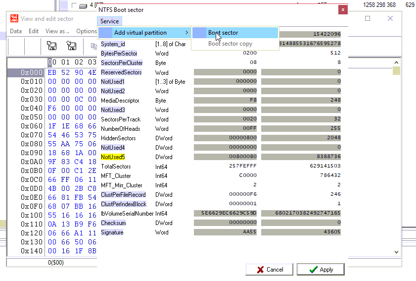 我们为找到的NTFS引导添加虚拟NTFS分区。