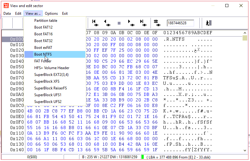 我们对503,318,015(LBA)的更大分区感兴趣。 复制此LBA。