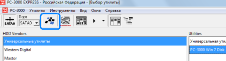 PC-3000 SSD 通过单击桌面面板上的按钮从 PC-3000 Portable、PC-3000 Express PC-3000 UDMA 系统的主窗口启动。