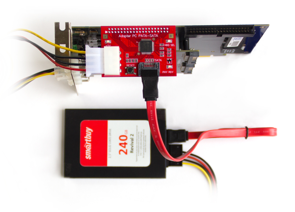 | 连接PC PATA-SATA适配器后,PC-3000 Express或PC-3000 UMDA-E的PATA端口之一将变成SATA端口,使您可以在Techno模式下使用基于PHISON PS3109和PS3111的SSD。 。
