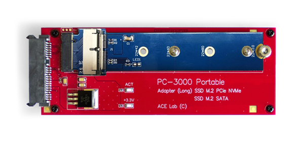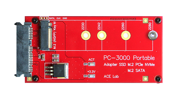 | 该适配器用于将基于PCIe x1-x16接口的SSD硬盘连接到PC-3000 Portable III的端口。 支持的PCIe NVMe / AHCI SSD。 |