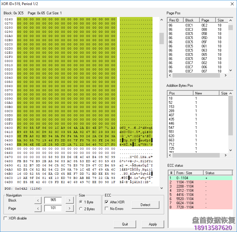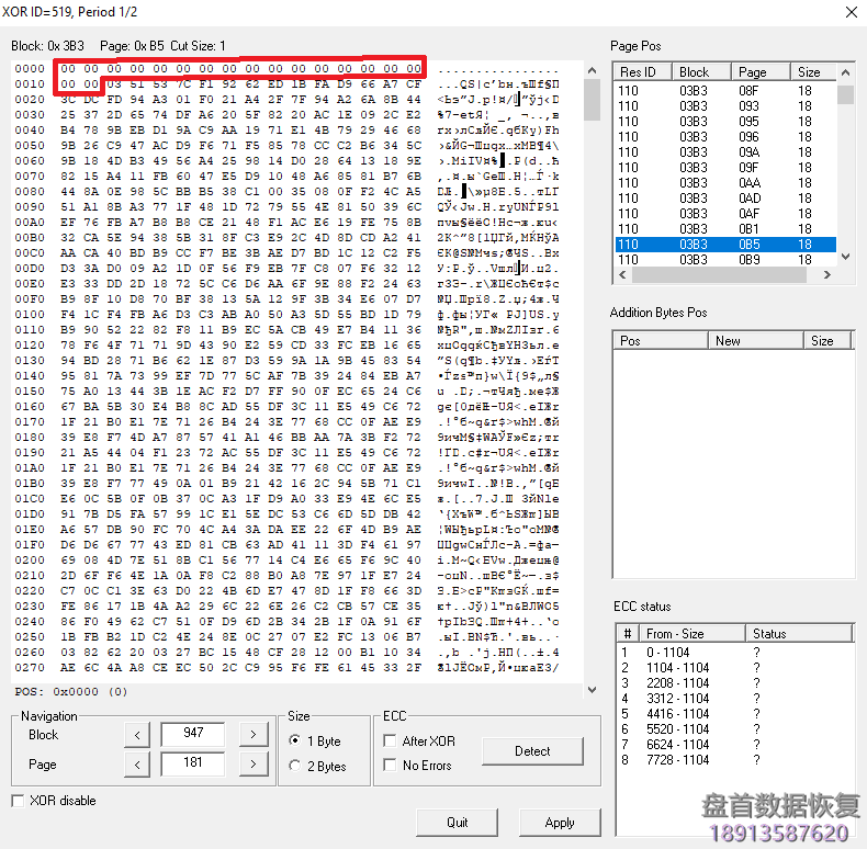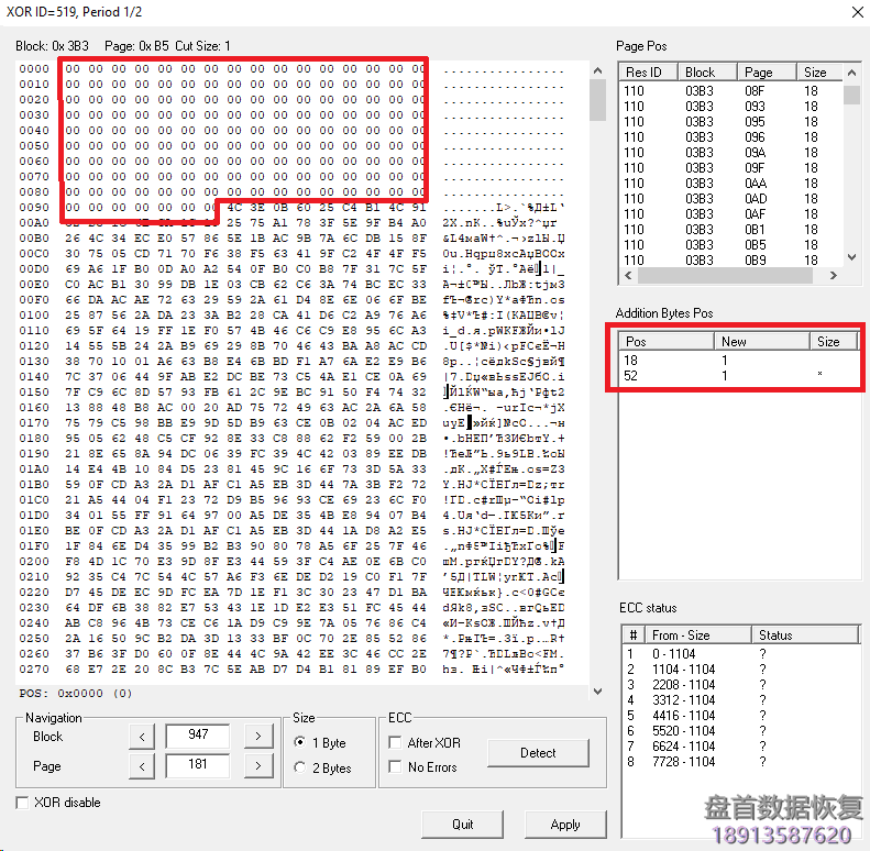 一旦纠正了第一个范围,就需要检查是否可以找到ECC。 打开标志“After XOR”(在这种情况下,只有在XOR之后才能确定ECC)