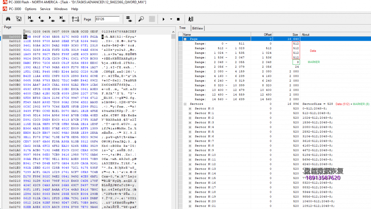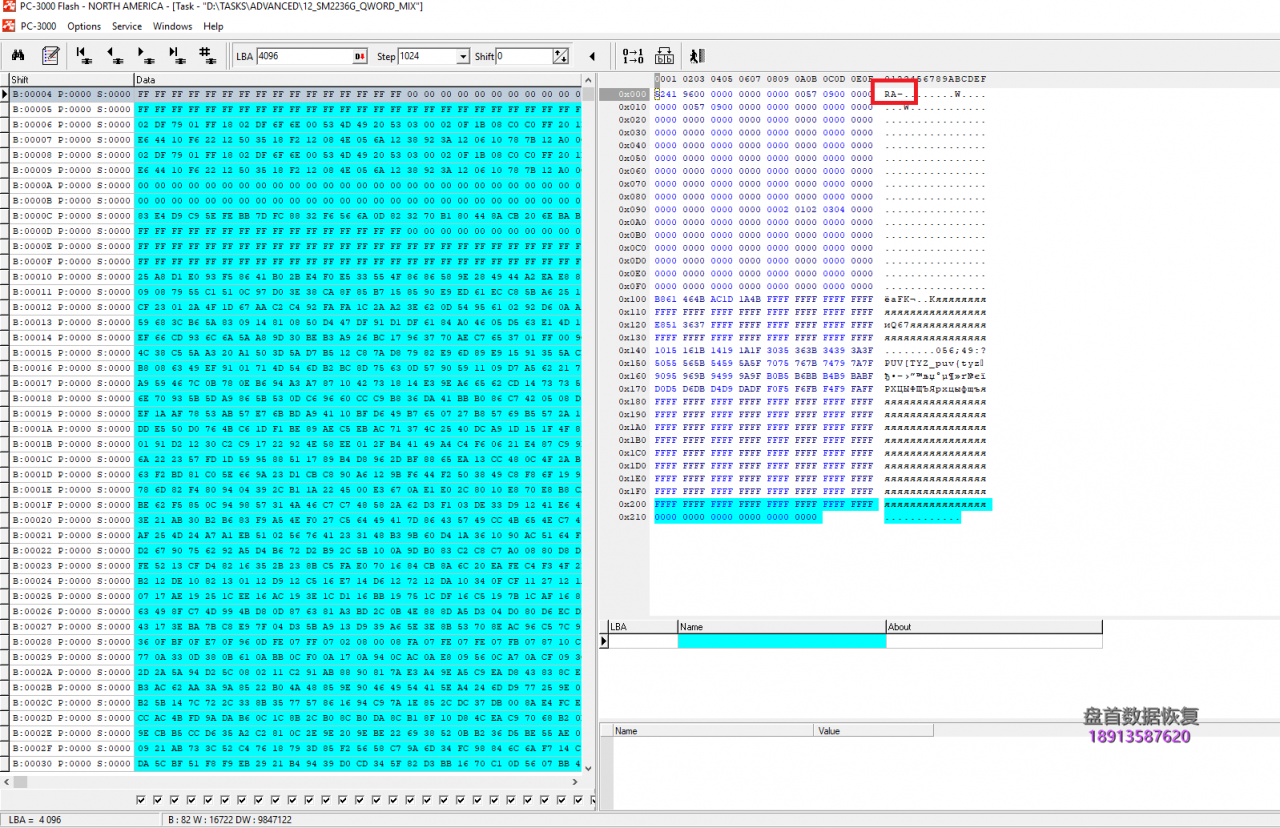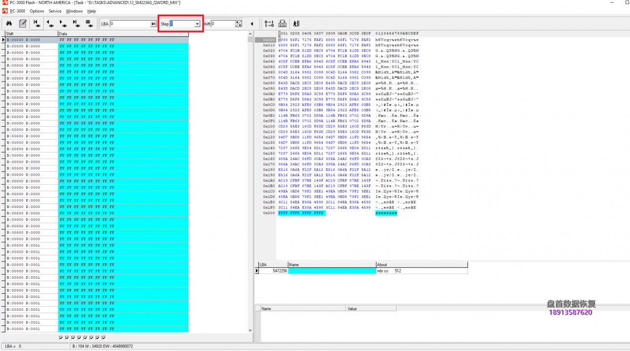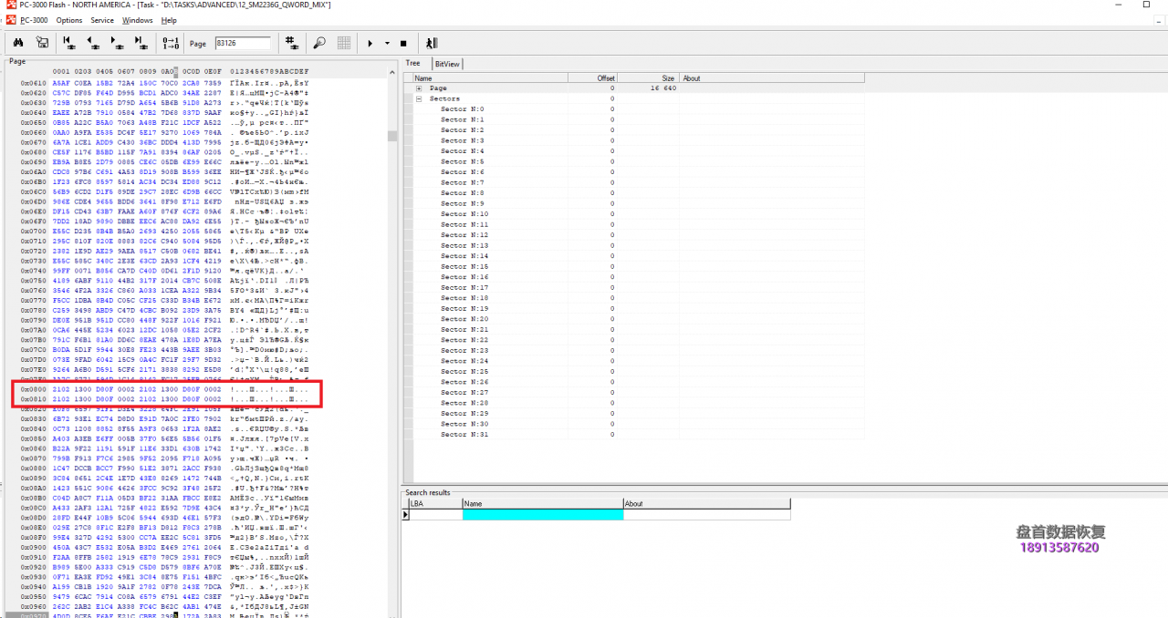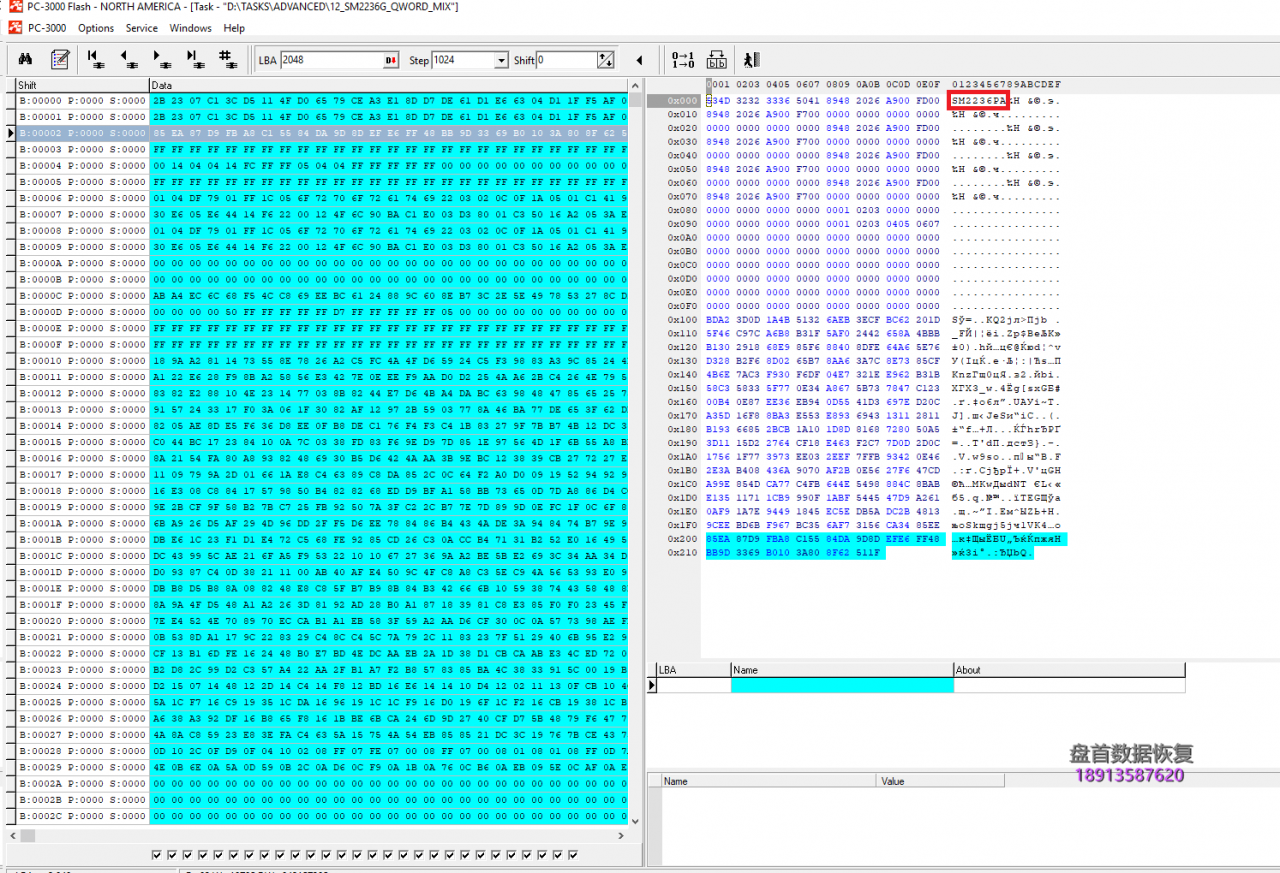 例如,如果我们需要编写短语:Silicon_Motion_With_SM2236_Controller_PC3000_Flash_Data_Recovery,控制器将按Qwords分割整个单词:Silicon_,Motion_W,ith_SM22,36_Contr,oller_PC,3000_Fla,sh_Data_,Recovery,之后将写入: