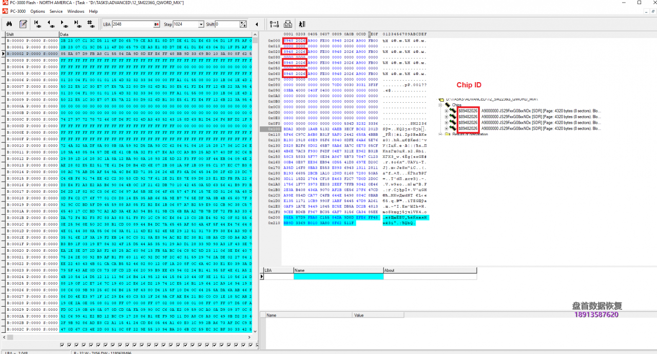 首先要做的事情! SM2236G在4个物理芯片之间分割数据,在你看到任何文件头之前,你应该做几个步骤。