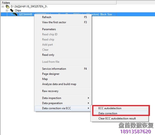 2.芯片读取完成后,在芯片上启动ECC Correction,等待整个过程无法完成。