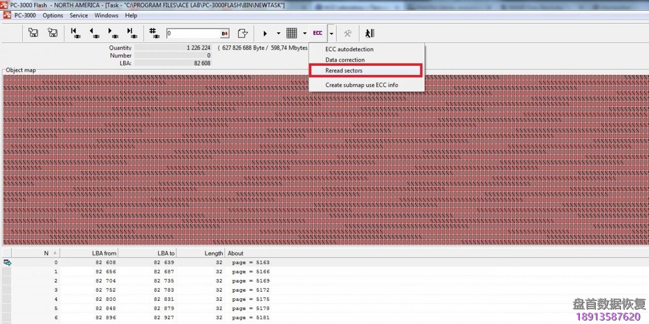从PC-3000 Flash SSD版本开始。 6.2.1增加了新的读数功能。 此功能允许应用自动验证+ ECC并重新读取内存芯片中的坏页面,从而获得更高质量的结果。 现代存储器芯片包含许多位错误,有时最终读取结果不足以进一步恢复,即使我们在芯片读取期间进行启动自动验证的ECC校正。 在这种情况下,我们建议每当ECC的功率不足以进行数据校正时,我们的用户就会启动此功能。 以下是如何启动它的指南。