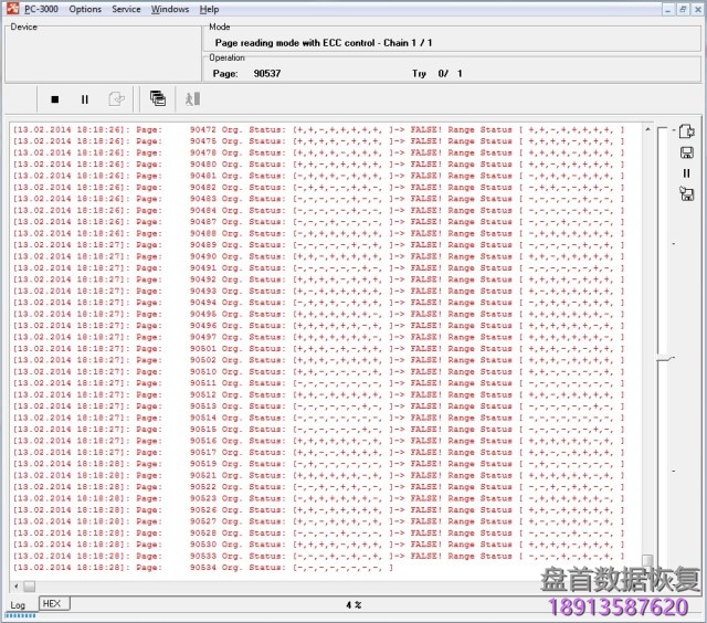 众所周知,东芝等公司生产的大多数现代TLC芯片都存在读取问题。 有时,在转储读取完成后,我们可以看到数据严重损坏了位错误,不幸的是,对于它们的纠正,ECC代码无效。 这种存储器芯片包含太多错误,并且ECC代码的功率不足以进行校正。 即使我们尝试使用读数来改进数据,很多页面仍然会被损坏而不是修复。