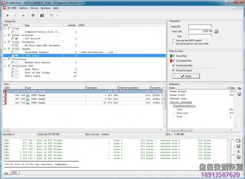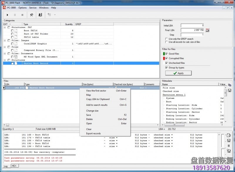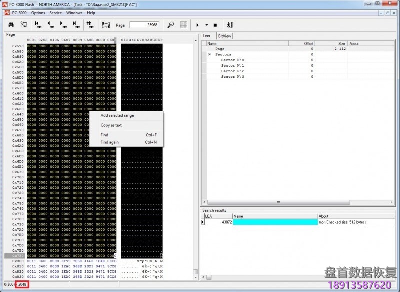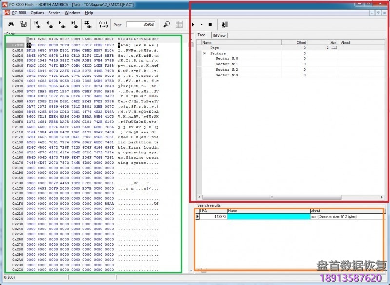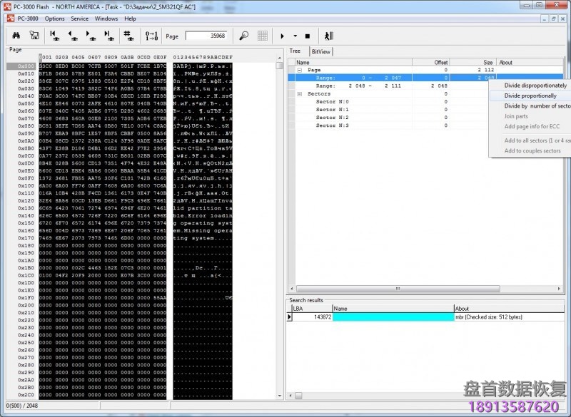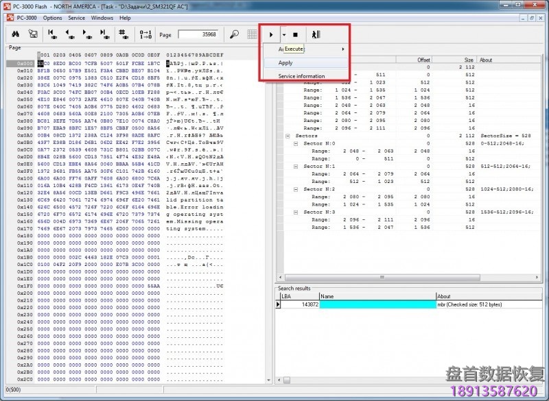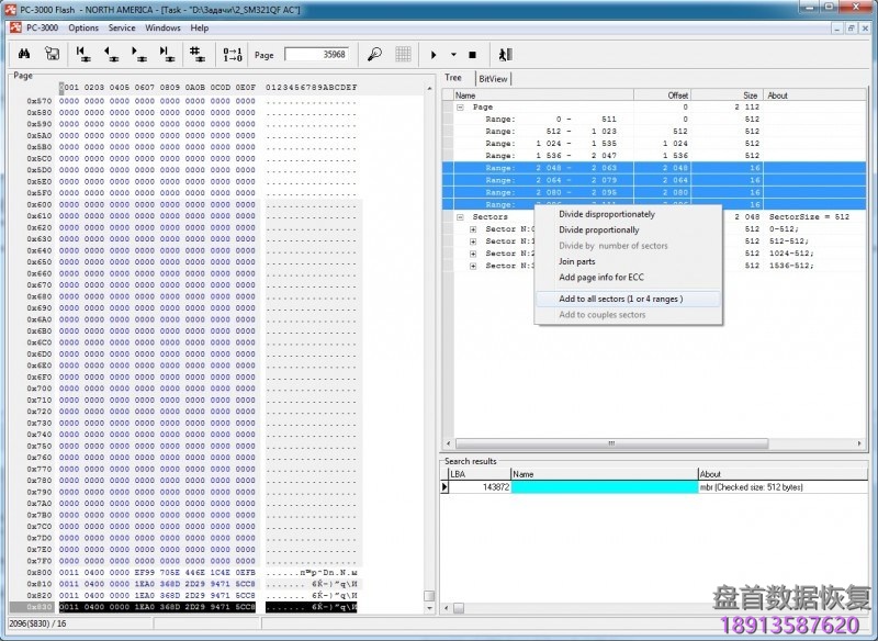但是让我们来看看512DA + 512DA + 512DA + 512DA + 64SA的情况。 在这种情况下,标准PC-3000分割会出错,我们将得到以下结构:512DA + 16DA + 512DA + 16DA + 512DA + 16DA + 448DA + 64SA ……在这种情况下,我们应该手动分离所有范围。 为此,我们尝试在变换图上启动RAW恢复,并找到一些系统文件,如MBR或BOOT。 之后,让我们将它添加到SEARCH RESULT中。