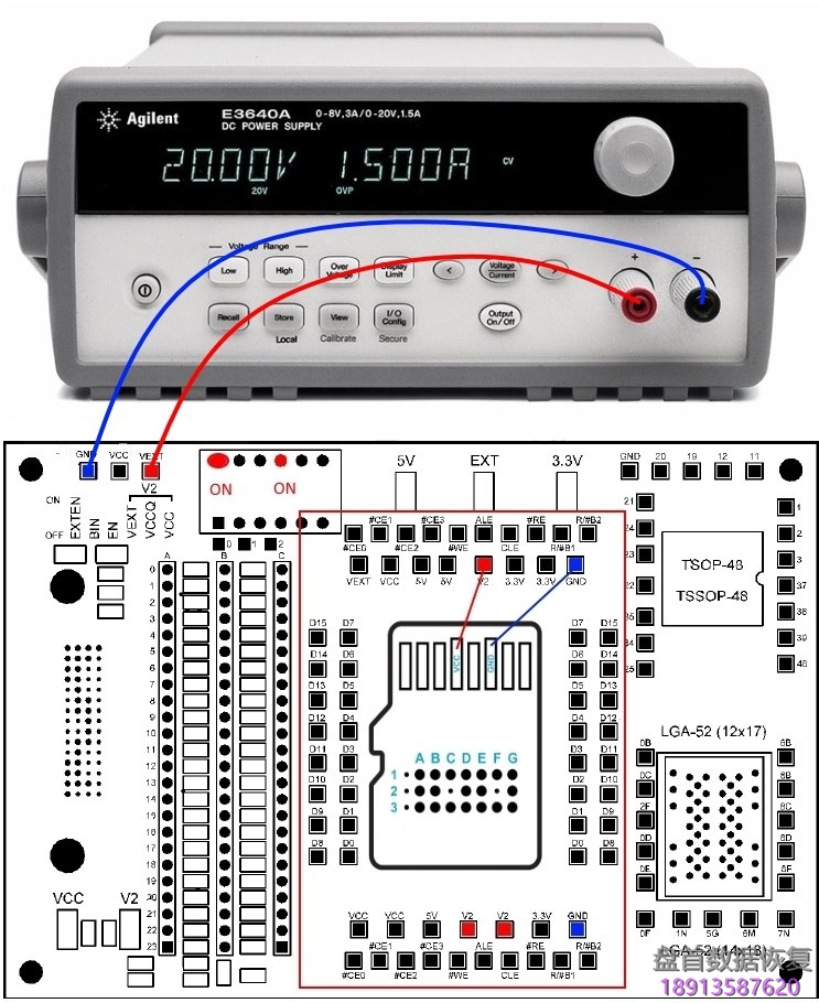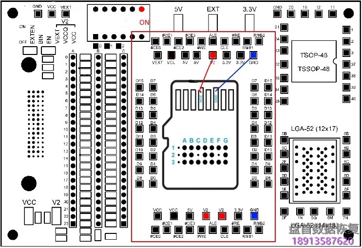 实际上,电路板适配器包含电源换向方案和连接到存储器芯片(整体件)的总线。 总线与PC-3000Flash读卡器相同,但电源换向方案比PC-3000 Flash读卡器有更多选择。