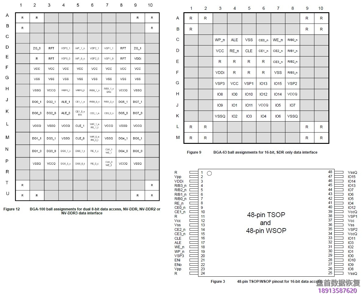 …所有具有相同名称的引脚已经相互连接。 TSOP / TLGA触点组的数据总线和控制总线已经连接到缓冲器元件,换句话说,不需要为TSOP / TLGA触点组焊接D0-D15,ALE,CLE,RE,WE,R / B.