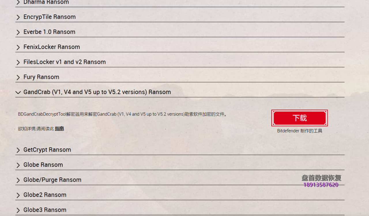 https://www.nomoreransom.org/zh/decryption-tools.html#GandCrabV1V4andV5uptoV52versions
